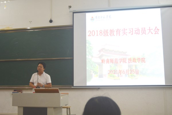 一年一度的教育实习即将开始,为保证法政学院2022届师范生教育实习工作的顺利开展,法政学院于6月25日在弘雷楼611教室举行2018级教育实习动员大会。副院长娄伟主持会议,学院党委书记李德深出席会议并讲话,思政系和历史系教育实习指导老师以及2018级思政系和历史系全体同学参加本次会议。