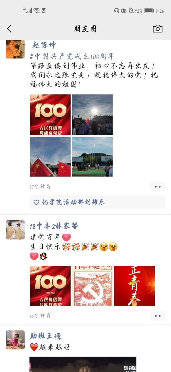 7月1日,文学与传媒学院党委为了进一步在青年学生中推进爱国主义教育,深化党史学习教育,组织全院学生以微信朋友圈为主要线上阵地,为建党百年庆生,为祖国祝愿,为青年人初心使命助力等发出青年学子的声音。