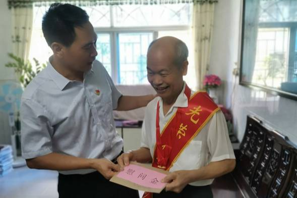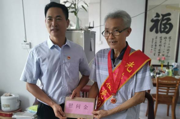 颁发“光荣在党50年”纪念章是中国共产党成立100周年庆祝活动的重要组成部分,充分体现了以习近平同志为核心的党中央对老党员的关心关怀。7月1日下午,按照学校党委指示,离退休党委书记庞景才带领综合科王齐伟、刘汉先和服务科余慧明三名老师前往部分党龄超过50年的老党员家中,为他们颁发“光荣在党50年”纪念章。