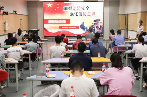 湛江市赤坎区消防救援大队领导周湘川结合火灾视频案例,向消防安全员们介绍了消防安全责任以及相关的法律法规,并指出校园可能存在的“导火线”。提出要紧紧围绕“防得住、灭得了、跑得掉”九字方针,切实强化消防意识,坚决做好校园消防安全工作。