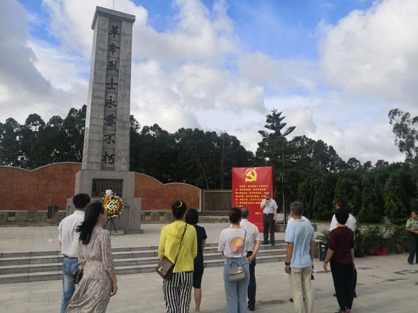 7月7日,根据学校党委在党史学习教育的部署安排,围绕“开展一次瞻仰参观活动”、“领导干部带头讲党课”的学习要求,文学与传媒学院阎开振院长以“传承红色基因 汲取奋进力量 开创学院事业新局面”为主题,在茂名化州柑村红色革命基地纪念碑前为学院党委全体支部书记上党课。