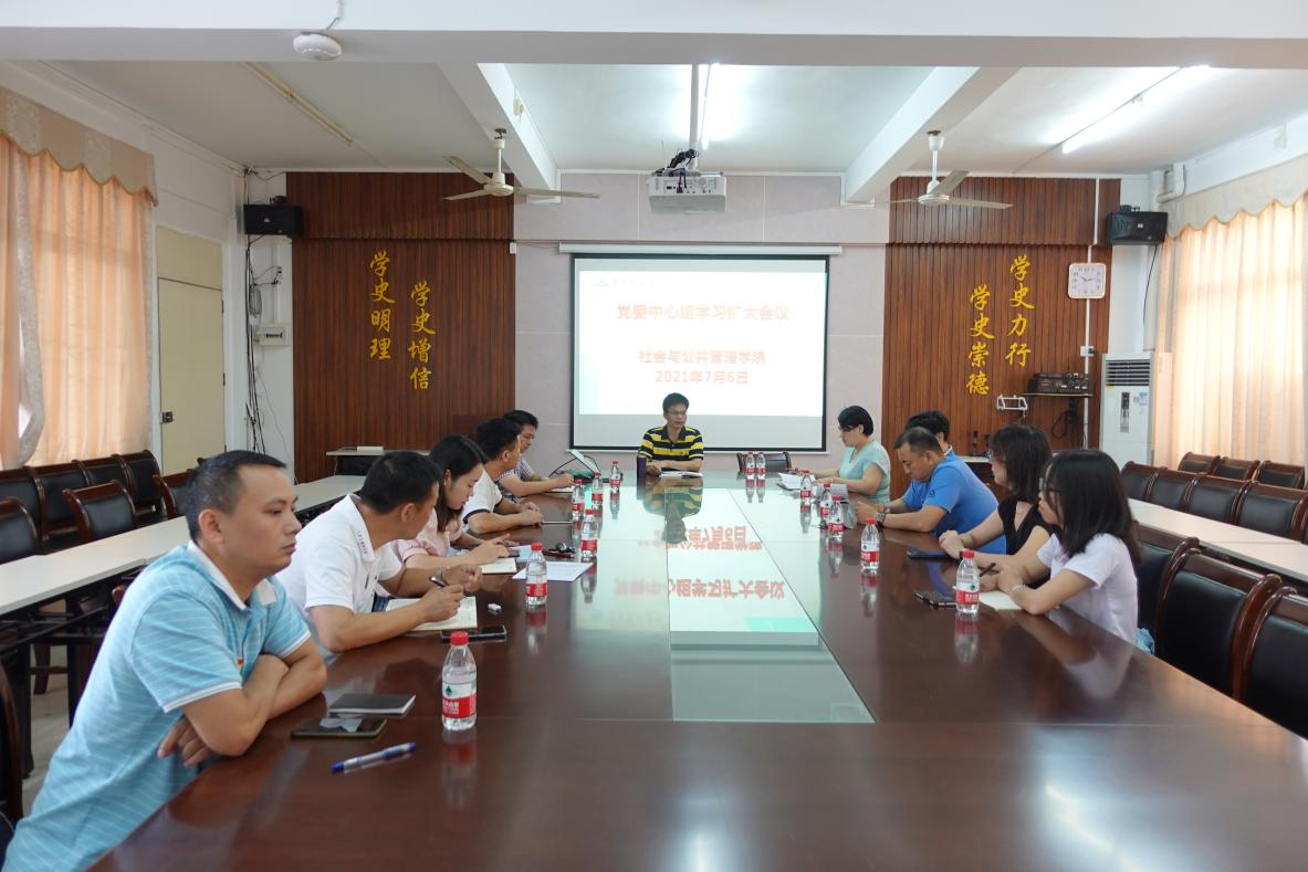 7月6日上午,社管院党委理论学习中心组在教三313室举行集体学习扩大会,集体学习习近平总书记在庆祝中国共产党成立100周年大会上的重要讲话。学院领导班子、支部书记和系主任参加了学习会,会议由党委书记冯亮如主持。
