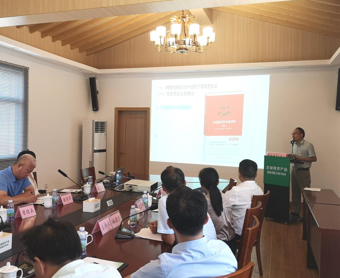 “历史和人民选择了中国共产党!”7月8日,岭南师院马克思主义学院贺永田博士受邀为广东北部湾农产品批发中心有限公司党支部作党史宣讲报告。报告题目为《历史和人民选择了中国共产党》,他的讲述简洁而有力,“‘打江山、守江山,守的是人民的心’,因为有马克思主义这一科学理论的武装,有千千万万党员始终冲在斗争的最前线,中国共产党用实际行动赢得了民心。”