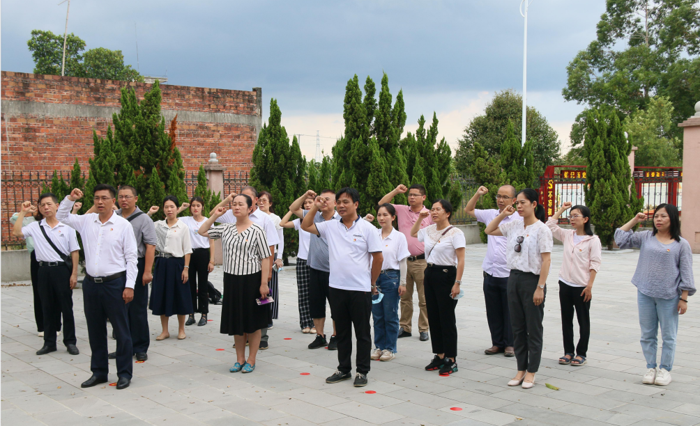 7月14日,学院(学校)领导带领全体教职工共40余人赴位于湛江市遂溪县乐民镇敦文村革命烈士黄学增故居和杨柑镇忐忑塘革命烈士钟竹筠故居,开展“寻访红色足迹,传承革命精神”主题党日活动,共同缅怀先烈,传承红色基因,坚定“听党话、感党恩、跟党走”的信念和决心。
