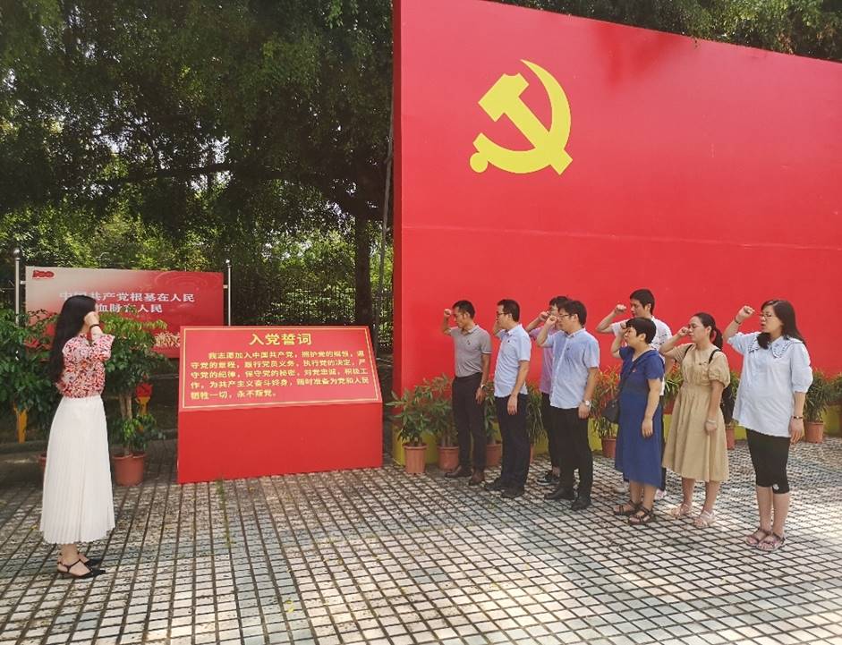 在博物馆广场,支部书记刘群慧带领参加活动的全体党员面对党旗隆重宣誓,重温入党誓词。忆初心担使命,在朗朗宣誓声中进一步增强了党员责任感和使命感,更加坚定了共产党员的政治立场。