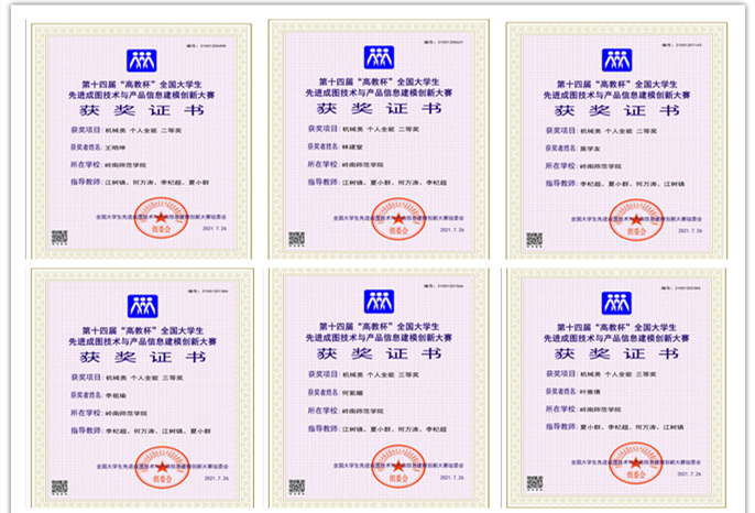 2021年7月24日-26日,第十四届“高教杯”全国大学生先进成图技术与产品信息建模创新大赛在线上成功举办。机电院王明坤、林建堂、莫学友、李祖瑜、何紫媚、叶雅倩、严宝麟7名同学,在指导老师张洪军、江树镇、何万涛、李杞超、夏小群的带领下,经过激烈角逐,获得机械类团体二等奖1项、机械类基础知识答题团体三等奖1项、机械类3d打印团体三等奖1项、个人二等奖项3项、个人三等奖项3项、机械类优秀指导老师二等奖4项,刷新机电院历史成绩!