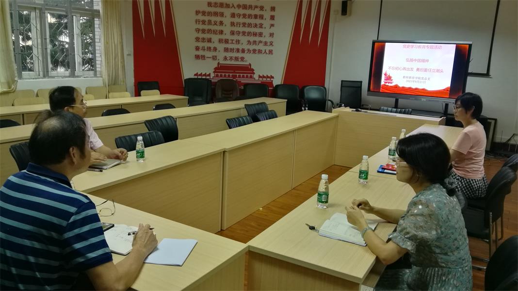 8月21日下午,师教院党总支在榕楼207室开展了“学百年党史 传中国精神 永远跟党走”党史学习教育专题活动。