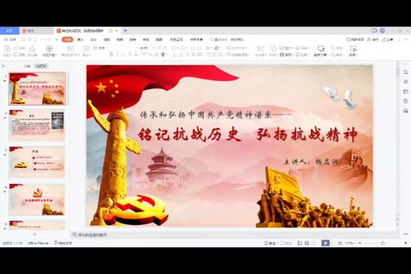 杨高润在学习中介绍了抗战精神。她表示,抗战精神是对民族精神的锤炼与升华,并希望同学们可以铭记历史,缅怀先烈。此外,杨高润对中国人民在新冠疫情和河南洪灾作出的努力给予了肯定与赞扬。她提到“中国人民用自己的实际行动展现了中国力量与中国精神,彰显了中华民族同舟共济、守望相助的家国情怀。”