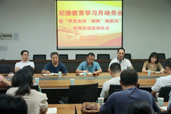 9月8日下午,美术与设计学院召开2021年纪律教育学习月暨“学党史纠‘四风’树新风”专项活动启动仪式,传达学校纪律教育学习月活动会议、文件精神,结合党史学习教育、巡视整改工作专项开展抓整治树新风工作。