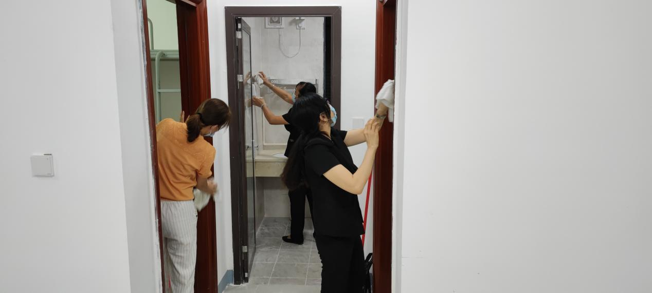 后勤教职工认真打扫公寓卫生