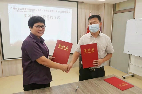 揭牌仪式之前,宾主双方就如何开展老年社会工作服务以及专业实习举行了广泛交谈,双方同意将在老年社会工作服务、项目开发、机构管理和法律法规政策等方面开展深度交流与合作。谢正富主任代表社会与公共管理学院与湛江市养老服务中心刘志贤副院长签订了双方共建专业实习基地协议。
