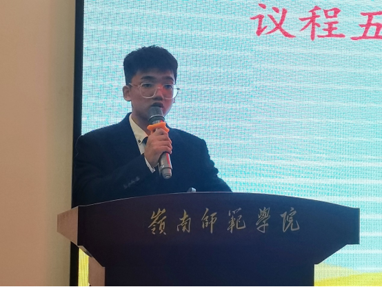 新生代表庞依娜和林子雅表达了对岭师的热爱之情、对学院的喜欢之情、对未来的期待之情,并许下承诺,一定会树立担当意识、牢记初心使命,用实际行动践行“请党放心 强国有我”的青春誓言。