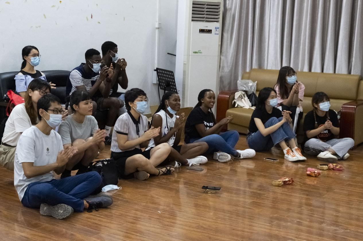 在活动现场,文化讲解员为留学生们图文并茂地介绍了中秋节的文化传统、风俗习惯、神话传说、诗词典故;校艺术团成员通过汉服表演、中国传统民乐演奏、古典诗词朗诵等环节展示了丰富的中国文化内涵与元素;随后现场的留学生与中国师生一起跳起了非洲舞。活动的表演部分在一首高昂澎湃的男声独唱《相亲相爱》歌声中结束,接下来师生们围坐在一起,在中秋节皓月的清辉映照下围绕节日主题展开充分的交流互动。