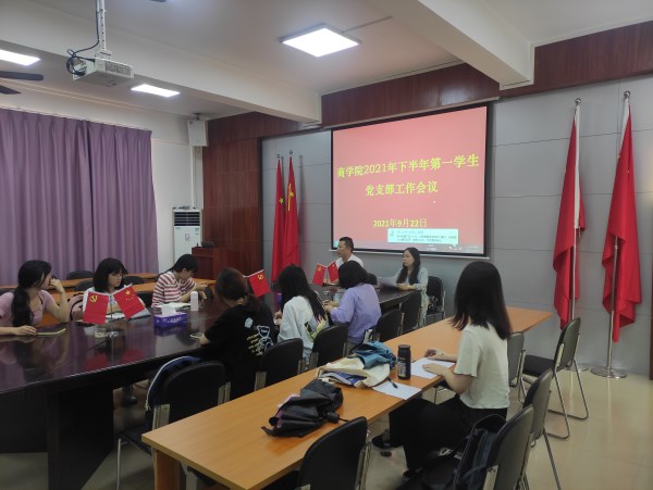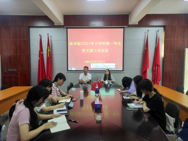 9月22日,商学院学生第一党支部于燕雷楼三楼会议室召开2021年秋季学期工作会议。商学院正处级组织员黄增、党委副书记李春霞出席本次会议。