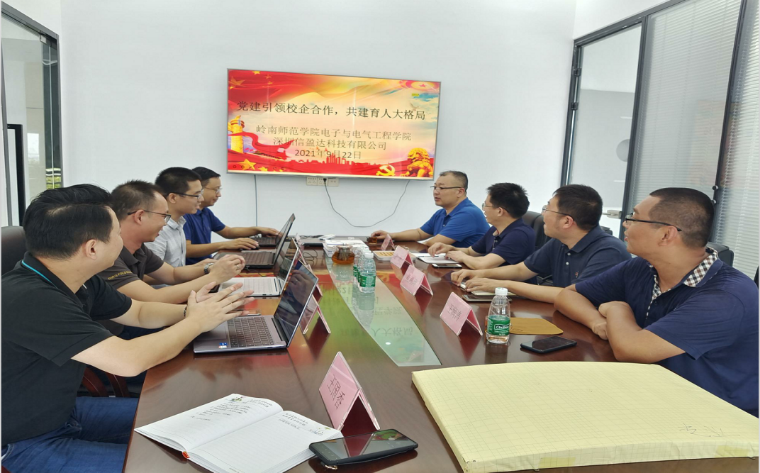 为了贯彻落实国家深化产教融合、协同育人、实践育人的决策战略,充分发挥校企双方优势,整合校企资源,2021年9月23-25日,在电子与电气工程学院陈波副院长的带领下,电子电气党支部书记、副院长王树文、物联网实验中心联合党支部书记桑海涛、电气工程系主任王润涛等一行4人前往深圳信盈达科技有限公司、北京三清互联科技股份有限公司(珠海),与公司党小组成员进行了党建共建、资源共享校企合作座谈交流。