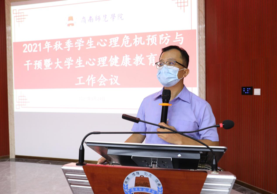 9月24日上午,学生处心理健康教育与咨询中心在榕楼一楼培训室召开2021年秋季学生心理危机预防与干预暨大学生心理健康教育教学工作会议。会议传达《广东省教育厅关于切实加强2021年秋季学期高校学生心理危机预防与干预工作的通知》文件精神,对学校秋季学期大学生心理危机与干预工作及《大学生心理健康教育》课程管理进行部署,学生处副处长邓倩文出席会议。