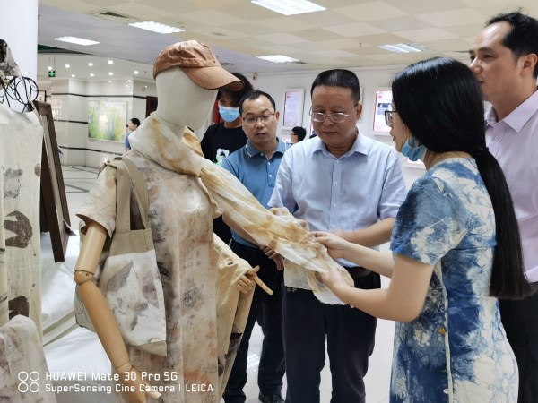 “这个作品变废为宝很有特色,体现了生态、健康、环保、助农的设计意义。”展览上桉树叶植物染系列服饰作品吸引了岭南师范学院创新创业学院院长刘金祥教授的目光,他建议可以通过申请专利、打造品牌做成大学生创新创业的典型案例。