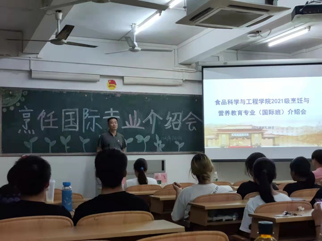 9月28日晚,食品科学与工程学院于燕雷楼c栋202室举办烹饪与营养教育(中外合作办学)专业介绍会。食品学院党委书记邱飞、学院教师黄亚芬与李恒、助理班主任参与本次会议。会议由20级烹饪与营养教育国际2班杨珂主持。