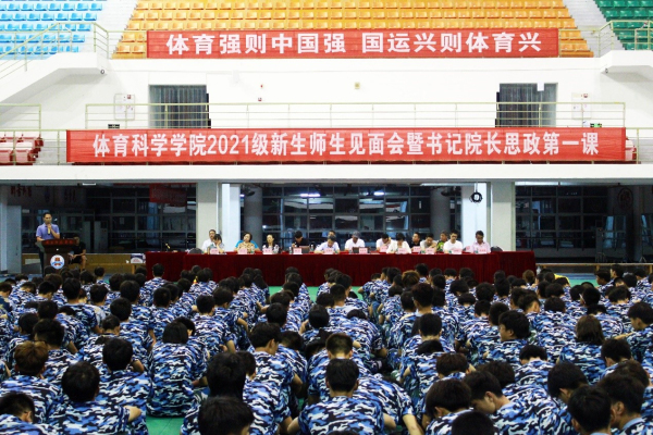 青春活力绽放,梦想扬帆起航。9月25日晚,体育科学学院党委书记庞景才、副院长(主持)王海涛为2021级新生在体育馆教授大学第一堂思政课。