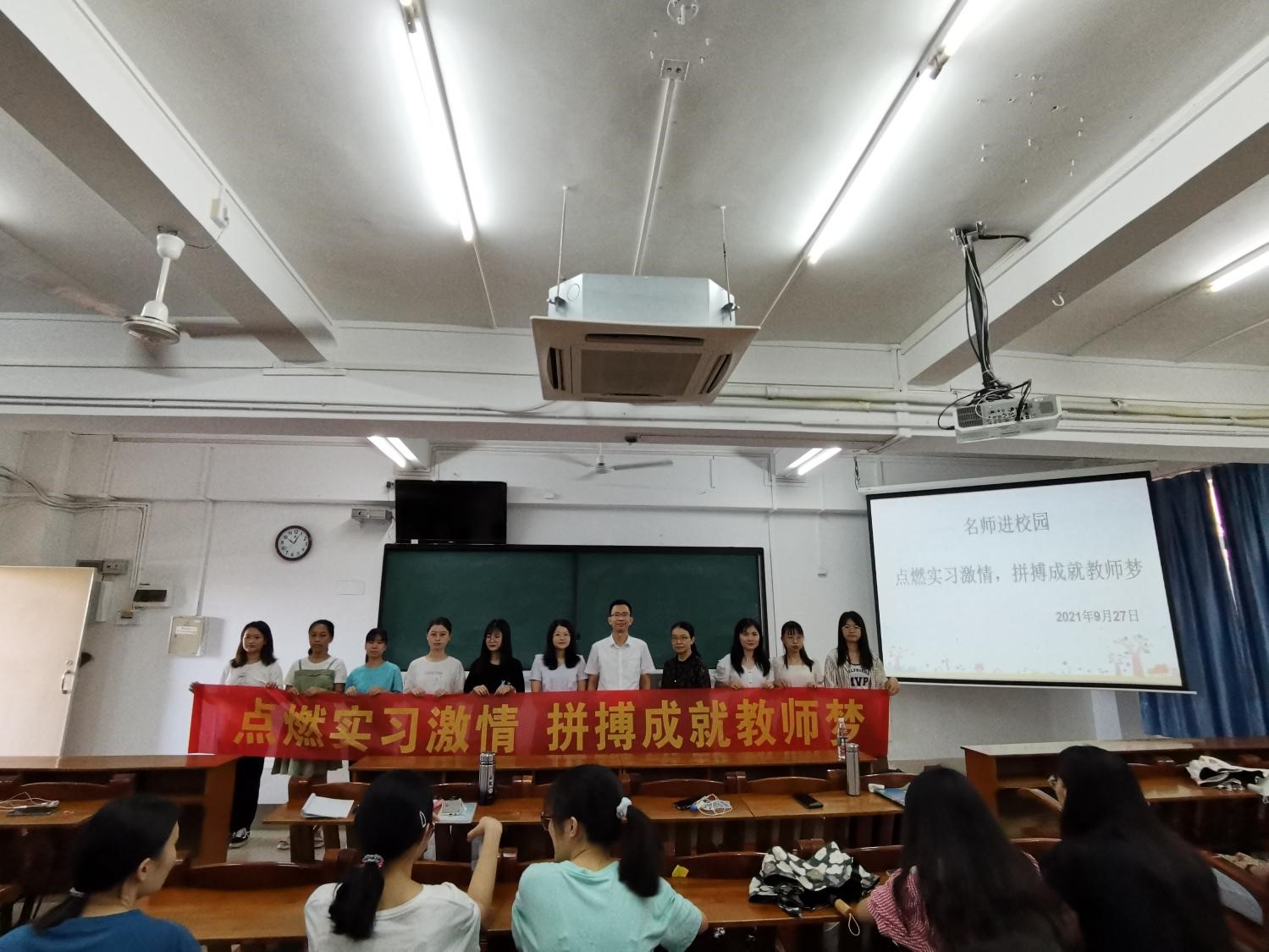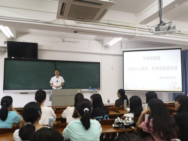 为了进一步提升师范生教学技能,拓宽师范生的教育视野,提高师范专业办学质量,根据学校关于做好2022届师范专业毕业生实习工作的通知要求,9月27日,生科院于第三教学楼705举办了主题为“点燃实习激情,拼搏成就教师梦”的“中学名师进校园”的专题讲座。讲座邀请湛江市第二中学戴凝老师主讲,生科院副院长(主持工作)刘锴栋、余小杏老师及2022届全体生物科学专业的师范生参加讲座。