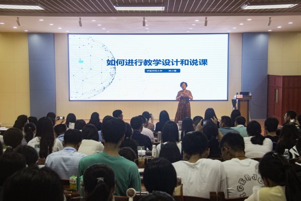 周小蓬先向同学们简要阐释了“如何进行教学设计与说课”,然后介绍了她在华南师范大学附中开展语文教学的经历和效果,并展示了教学视频。讲座中周老师重点以高一语文必修第一单元为例,为大家讲授了高中语文统编教材的变化和改革,如何进行科学有效的教学设计和实施教学。最后,周老师还耐心详细地回答了同学们的提问。