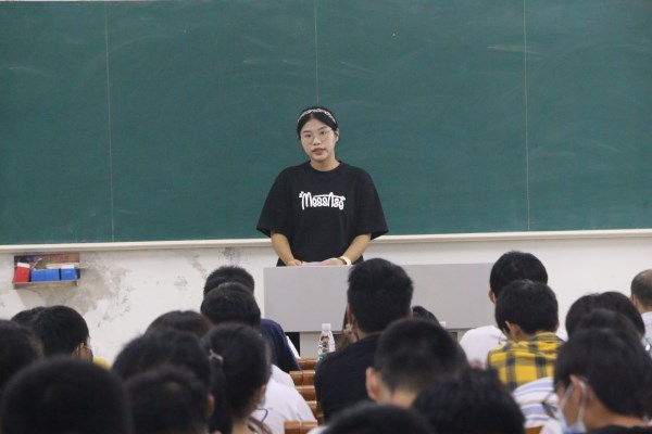 黄展发言。她充分肯定了召开本次专业介绍会的意义,通报了近年来机械设计制造及其自动化专业建设的喜人成绩,夸赞了在场机制专业同学们精神面貌,并表示学院以培养学生为目标,会创新人才培养模式,为同学们在学习生活、考研竞赛等方面创造更好的条件,不断提高人才培养质量。同时,她为同学们提出了四点宝贵的建议:第一,专业是我们的立身之本,同学们要增强专业自信,加强专业学习;第二,要经得起外界的诱惑与压力,笃定信念,做最适合自己的选择;第三,谨遵校训精神,上善若水,立大志、明大德、成大才、担大任;第四,加强体育锻炼,提高身体素质。她希望同学们既来之,则安之,试着去理解和了解此专业,与本专业“谈一场恋爱”,通过在机电学院机制专业的学习,将来能在机械工程领域成为国家栋梁之材,同时也成就自己的人生梦想。