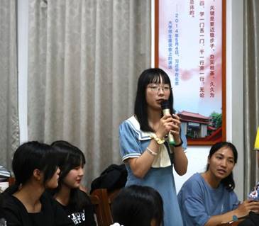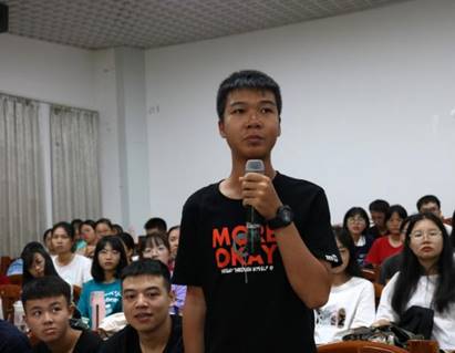 2019级学生代表陈紫婷从学习、生活和能力这三个方面给同学们分享了一些经验。2021级新生代表黄柳吟认为大学期间要努力学习,提升自己的专业能力,不辜负老师的教导、学校的栽培,努力成为一名光荣的人民教师,努力成为社会有用的精英人才。答疑环节同学们积极提问,专业教师以及往届学生代表耐心为同学们答疑解惑,众人受益匪浅。