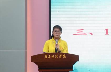 “大学是一个自我成长的过程,你今后能走多远,取决于你的目标和努力。”陈蓉副教授如是说。陈蓉副教授向同学们提出了三点建议,一是家国情怀,树立青年担当;二是坚定理想信念,制定学业计划;三是明确自我修养,发展兴趣爱好。陈蓉副教授还向同学们列举了一些关于师兄师姐的优秀事迹,她希望同学们能向师兄师姐学习,寻找机遇,提高自己的科学研究素养和教学研究能力。