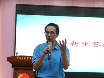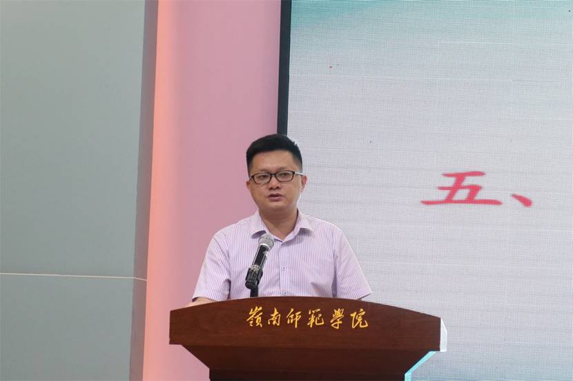 刘锴栋副院长(主持工作)从专业发展、人才培养、师资队伍、保障条件、教学科研特色与成果五个方面对生物科学专业进行了详细的介绍和讲解。他指出,生物科学是以培养熟练掌握生物学理论知识和技能、具备全面的中学生物学教学技能、以及较强的教学反思力和改进能力为目标,向国家输送德智体美劳全面发展的“负责任、强能力、善创新”的优质中学生物教师,同时也为硕士研究生教育培养输送优质生源。刘锴栋副院长指出生物科学专业的教学改革项目突出并且成果显著,获得多项荣誉。同时,生科院每年都开展师范生技能大赛、生命科技文化节、红嘴鸥保护、高山榕生态习性研究与保护、粤西生命科技创客教育等活动和比赛,他希望同学们能积极参与,锻炼自我,提升自己。最后,他祝愿同学们在大学四年能学有所成,学有所获,身体健康,一切顺利。