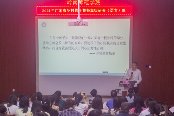 10月17日上午,广东省百千万人才工程初中文科名教师培养对象、深圳市十佳青年教师、深圳市初中语文学科教坛新秀、光明新区首届骨干教师、中山大学深圳附属中学副校长游云云校长莅临我校,在榕楼报告厅作题为《和学生的心弦对准音调——我的作文教学实践》的讲座。讲座由黄高飞老师主持。文传学院100多名学生和2021年广东省乡村初中骨干教师高级研修(语文)班的近50名老师参加。