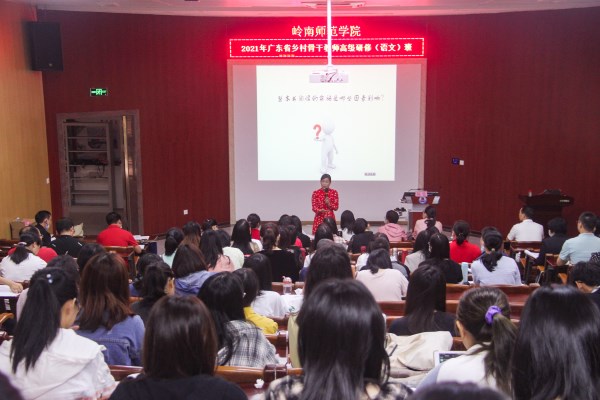 10月16日下午,广东省语文名教师工作室高校指导专家、文学与传媒学院副教授陈斐老师在我校榕楼报告厅为2021年广东省乡村骨干教师高级研修(语文)班近50名学员作新课程语文整本书阅读教学讲座。近百名文传学子聆听了讲座。