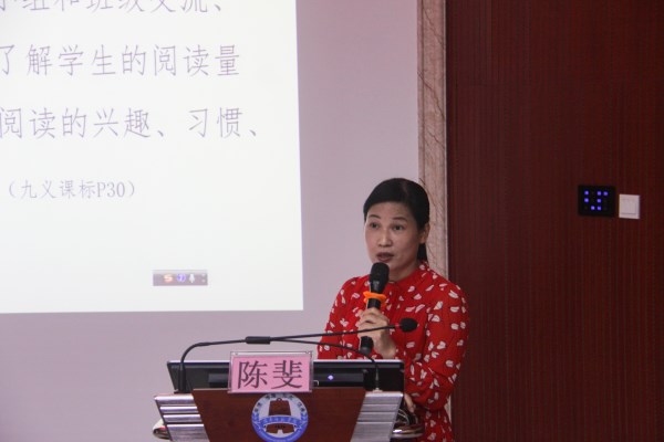 陈斐指出了在初中教学中难以推进整本书阅读主要受课标、教材、教师三个因素的影响。她针对如何调动学生阅读积极性以及作为教师要怎样在繁忙中持续高效地做好专业阅读发表了自己的看法,指出整本书阅读的目标应该在于保证学生的阅读量,泛读为主,精读为辅。