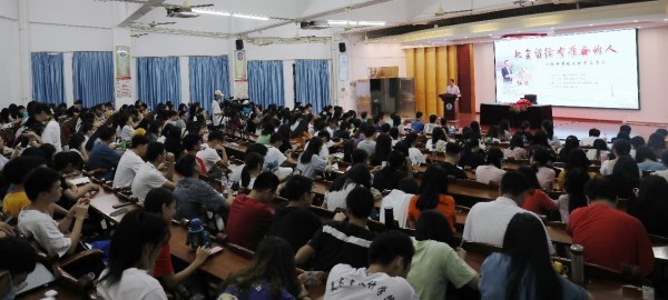 近日,文传学院优秀毕业校友、广东省督学、省特级教师、省名校长工作室主持人、廉江中学党委书记张旭校长走进岭南师范学院开展“机会留给有准备的人——一个中学校长的成长启示”为主题讲座,全场三百多个位置座无虚席,学生反响很好。