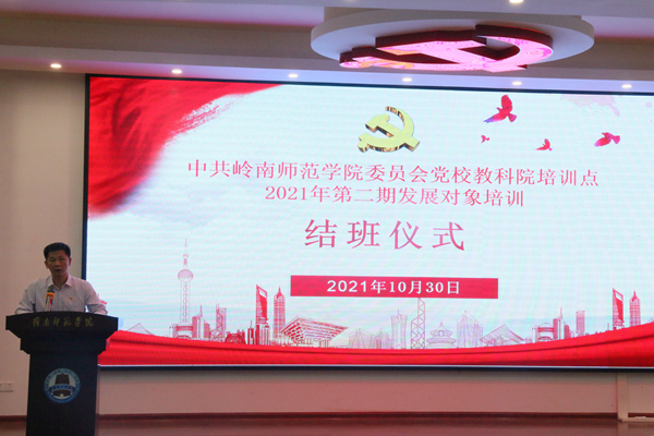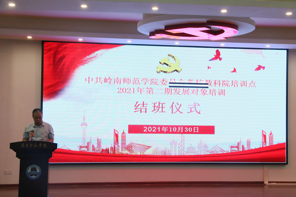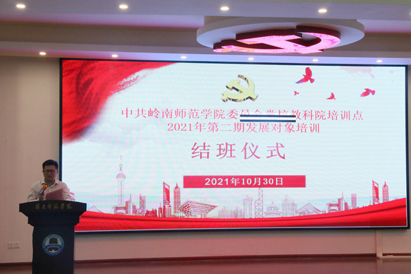 10月30日晚,教科院党委于教三211举办2021年党员发展对象第二次培训结班仪式。教科院党委书记梁晋、外语院党委书记陈永国、生科院党委书记梁煜鹏、计算机院党委书记李海文、教科院党委副书记陈理才、地科院党委副书记王雄艺、数计院党委副书记全光华、电子院党委副书记陈海东、教科院正处级组织员郑赞芳、食品院组织员姚其元,第二期发展对象出席了本次仪式。仪式由生科院党委书记梁煜鹏主持。