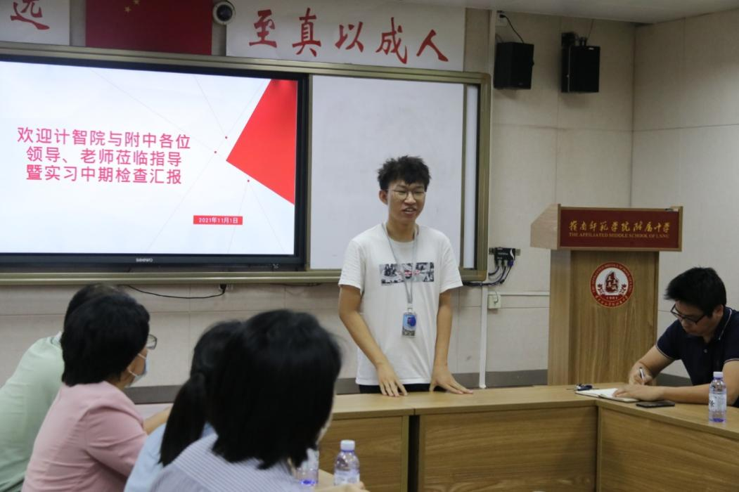 为进一步加强我院与实习单位的交流和沟通,全面掌握实习生实习情况和效果,提高毕业生实习质量。2021年11月1日下午,计算机与智能教育学院党委副书记陈明娟、副院长洪伟铭、教育技术系主任沈丹丹和辅导员周东方晨一行赴岭南师范学院附属中学和湛江一中培才学校两个实习基地看望学生、检查实习工作。