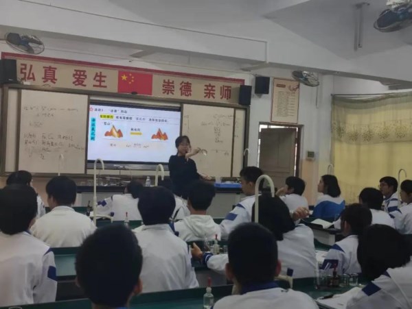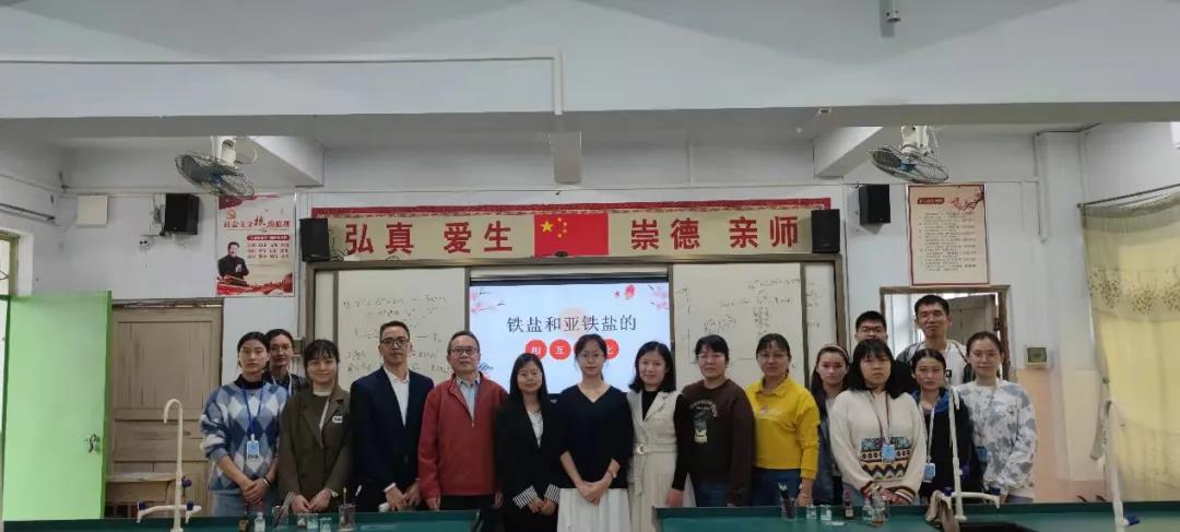 为了促进与实习学校的协同发展,化学化工学院化学教学论教研室与岭师附中备课组于11月12日上午,在岭师附中化学实验室,联合举行了化学实习生汇报课,实现“观、评、议”教研活动。参加教研活动的有化学院化学教学论教研室的刘一兵、谭高亮、彭兰贞老师;岭师附中化学课备课组长黄丽霞老师、湛江名师化学工作室主持人夏姣老师;岭师附中2018级化学全体实习生以及附中高一(7)班全体学生。
