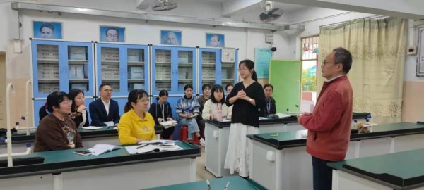 课后,化学教学论教研室主任刘一兵主持了本次的评课、议课活动。附中化学科组长和名师工作室主持人夏姣老师对实习生宁子慧教学给予了肯定。认为宁子慧无论是课题的引入,还是上课时的教态都是优秀的,关于丹霞山的情景取材非常接地气,激发了学生的学习动机。同时,夏老师也提出了几点改进的建议。一是情景的应用还需要进一步优化。二是问题指向要明确,让学生明白问题是什么,答案怎么找。三是无论是作为一名新教师还是实习生,尽量写讲课详稿,这是新教师成长的必经阶段,也是对全体实习生的建议。备课组长黄丽霞老师认为教师作为学生的引导者,需要满怀激情带动学生学习,新教师需要尽快适应老师的角色,对教育工作始终保持浓厚的兴趣和热情。