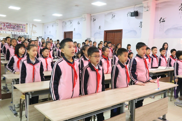 黎欢娴号召同学们在我国向第二个百年奋斗目标迈进征程上,传承中华民族优良传统,在校做个好学生、在家做个好孩子、在社会做个遵纪守法的好公民,争当时代小先锋,做合格的社会主义建设者和接班人。