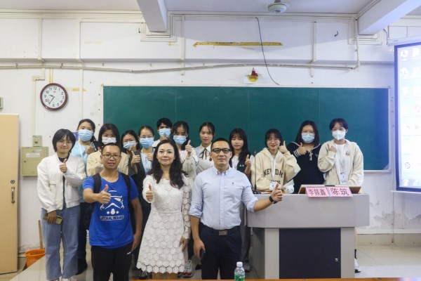 讲座开始之前,梁碧斐党委副书记进行了发言。她代表在场人员对两位老师表示感谢,并分享了李燚鑫老师为青年教师用心评课,陈筑老师在《南方日报》上发表感人文章的故事,让同学们进一步了解两位老师。