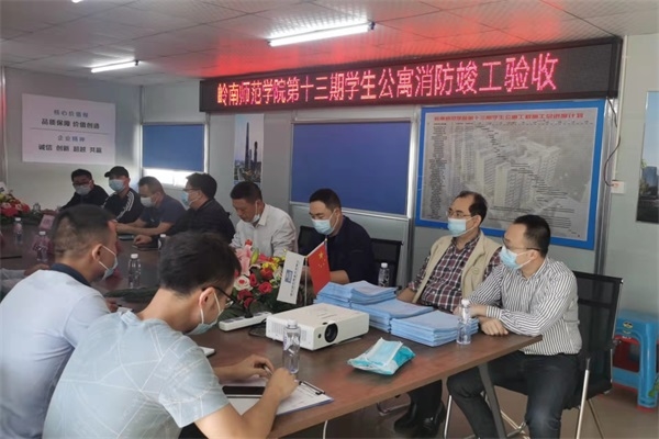 11月16日下午,湛江市赤坎区住房和城乡建设局副局长何瑞昌率领验收组一行3人来到学校,对我校第十三期学生公寓进行消防验收。验收过程中,验收组对消防应急疏散通道、消防登高场面、消防给水、消防产品等进行了仔细查验,一致认为该工程严格按照图纸设计要求和验收规范完成施工,现场测试的消火栓系统、消防设施、消防产品使用等均符合现行标准规范,消防验收顺利通过。