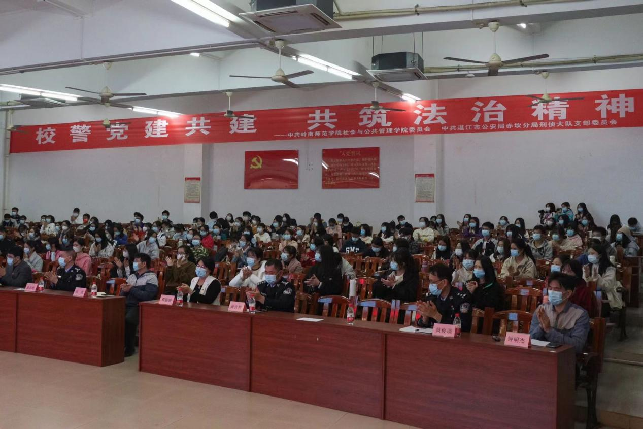 为进一步加强校警联系,增强师生的法治意识,共建安全和谐校园,12月2日上午,社会与公共管理学院党委与湛江市赤坎分局刑侦大队党支部于弘雷楼211室联合举办党建共建普法宣传活动。