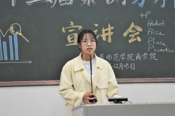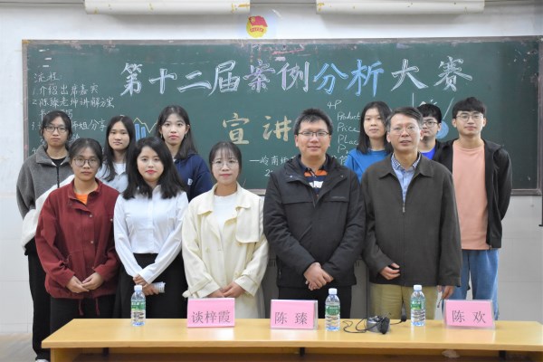 12月6日晚,商学院第十二届案例分析大赛宣讲会于燕雷楼301室举行。商学院副院长陈臻、教师陈欢及嘉宾来自19国贸1班的谈梓霞出席此次活动。
