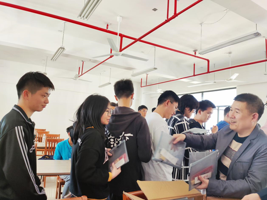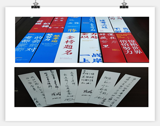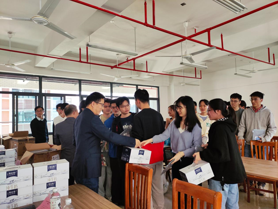 随后,学院领导为考研学子逐一发放亲手书写的考研书签、考研文具、牛奶等礼品,并引用横幅“海到尽头天作岸,山登绝顶我为峰”给予学子最好的勉励与祝福。在场同学们纷纷表示要鼓足干劲,坚持到底,全力备考,牢记叮嘱,不负众望,用最好的状态迎接考试,用最好的成绩报答学院和母校。
