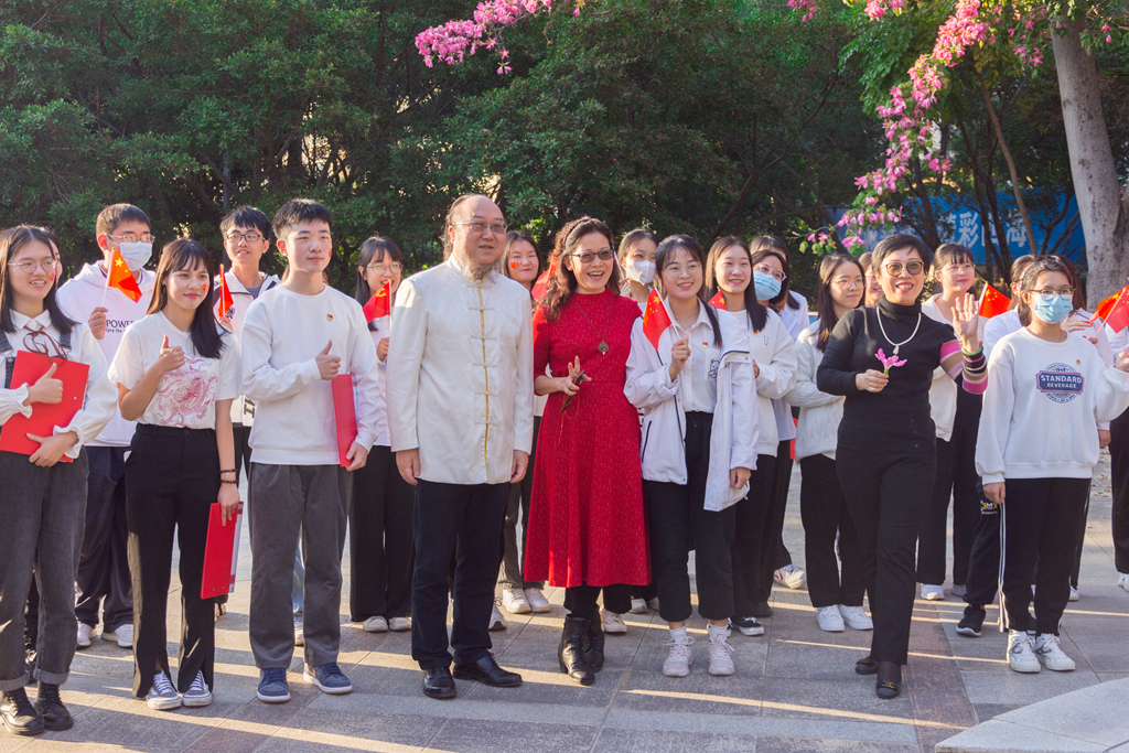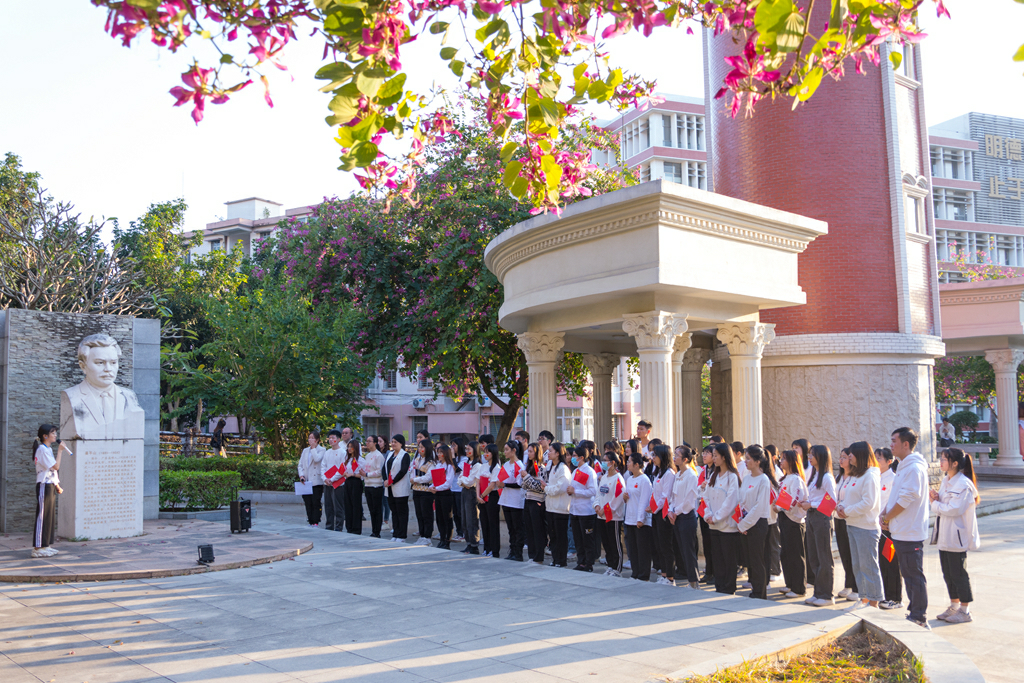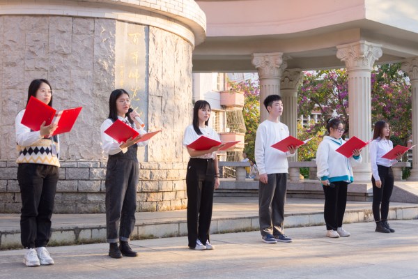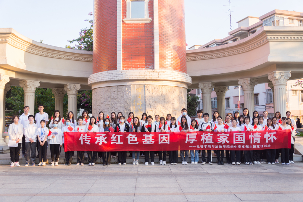 12月5日下午,社管学院学生党支部联合法政学院学生党支部于学校谭平山纪念园开展以“传承红色基因,厚植家国情怀”为主题的党日活动。参与活动的人员有社管学院党委副书记邓蔚婵、学生党支部书记吴桂碧、社管学院与法政学院学生党员及入党积极分子代表。