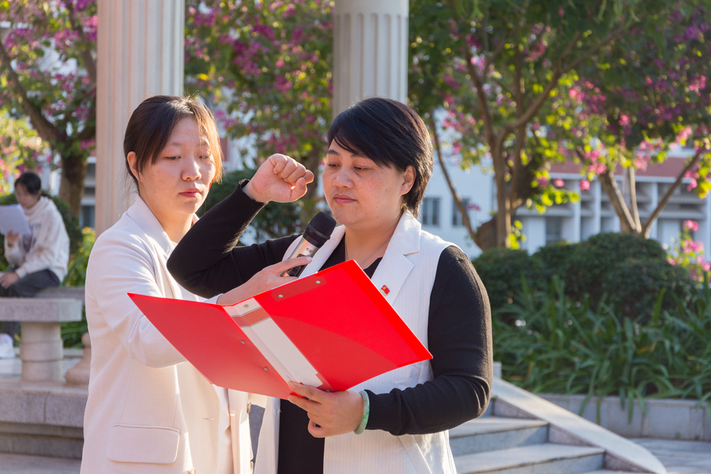 活动伊始,由社管学院学院党委副书记邓蔚婵带领学生党员以及入党积极分子重温入党誓词。