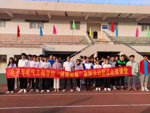 鸟儿轻轻鸣叫,黎明微微破晓。为进一步增强学院学生的综合素养,做好体育建设工作,12月10日上午7:30,电子与电气工程学院于雷阳区田径场开展第2期"健康岭师"晨跑暨思政微课堂活动。学院党委副书记陈海东,辅导员贾冰妮、黄秋洁,20级电信班和21级电气3班参加了本次活动。
