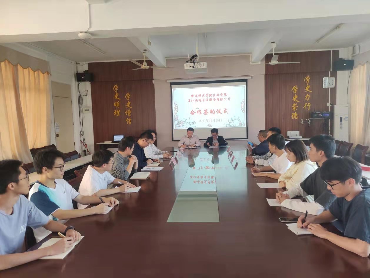 为了给学生提供更好的锻炼、创业平台和充分发挥校友的创业、就业资源,也为了进一步推动校企合作,努力构建与校友合作共赢的良性发展机制,12月9日下午,法政学院和湛江安逸生活服务有限公司在法政学院313大会议室举行创新创业实践基地合作签约仪式。