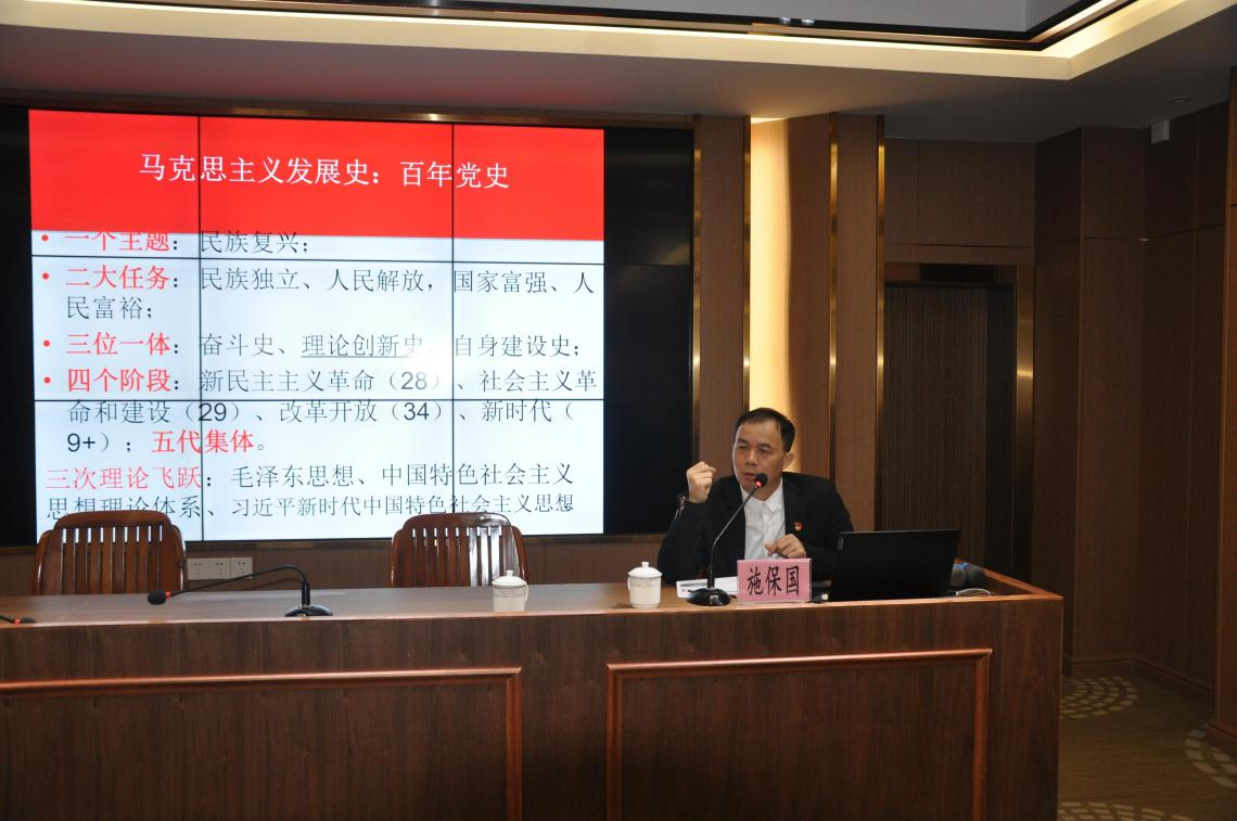 12月21日上午,后勤党总支和继续教育学院联合开展党的十九届六中全会精神宣讲会,邀请学校党史宣讲团成员、马克思主义学院副院长施保国教授进行主题宣讲。宣讲会在园府三楼三号会议室举行,后勤党总支各支部书记、委员,代管单位、科室、实体科级及以上干部,教育服务公司总经理、副总经理和继教院全体教职工共计40余人参加,后勤党总支书记李炳富主持。