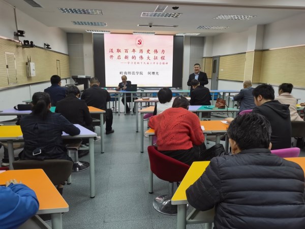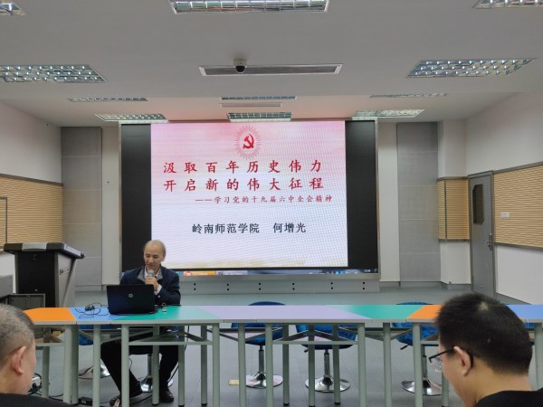 为深入学习宣传贯彻党的十九届六中全会精神,12月22日下午,电子院邀请到马克思主义学院院长何增光教授在综合实验楼B802课室作专题宣讲,学院党委书记柯春明主持,全体教职员工参加了本次学习。