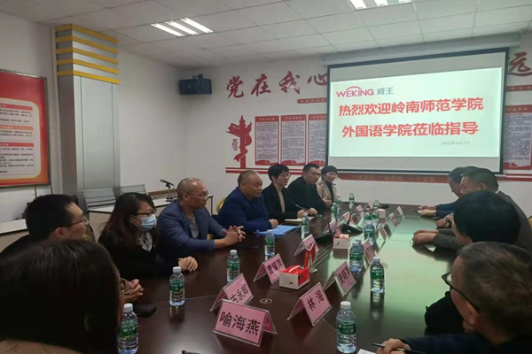 威王集团负责人梁苏总经理对外国语学院陈永国一行到企业实地考察表示欢迎,详细介绍了公司的经营范围、主要产品的销售领域、对毕业生的岗位要求以及未来发展布局等,同时表示,业以才兴,企业的发展离不开人才的引进和培养,表达了与岭南师范学院外国语学院深入开展校企合作的意愿。